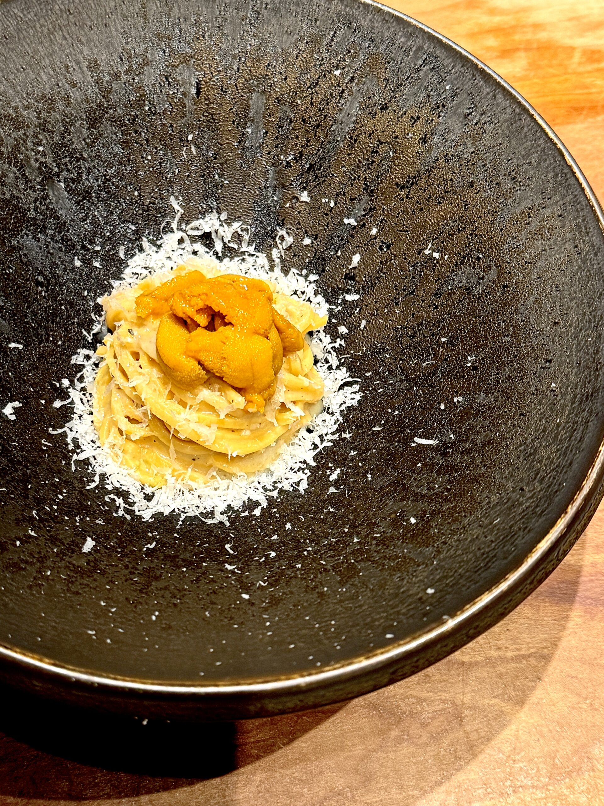 今年はニンニクを利かせて、生雲丹と合わせたタリオリーニをご用意しました!