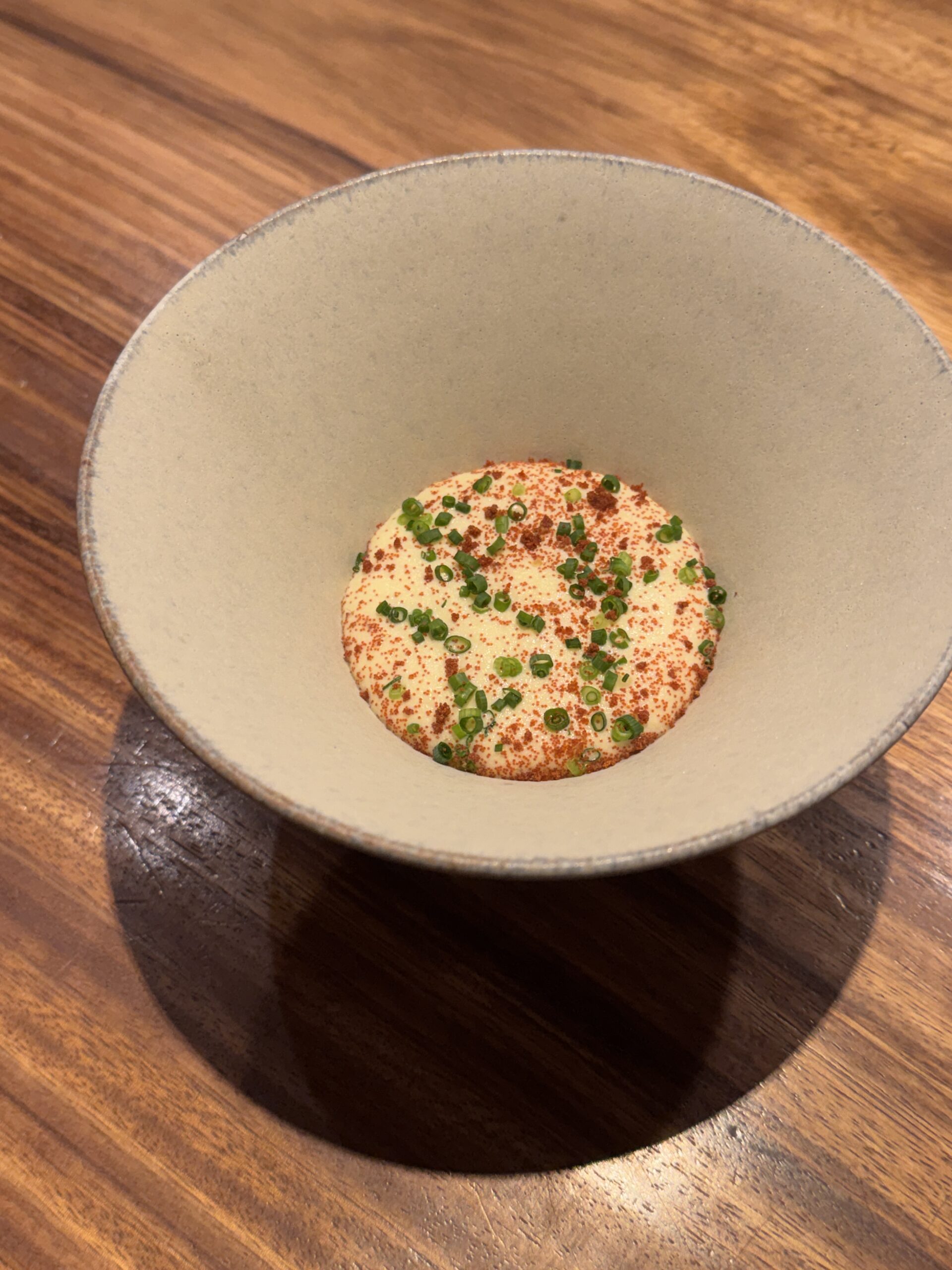 一品目は「菊芋のスープ、揚げニョッキ、白トリュフ」