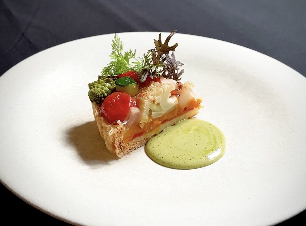 サラダには、何年もシェフ根本が温めていた「野菜のタルト」